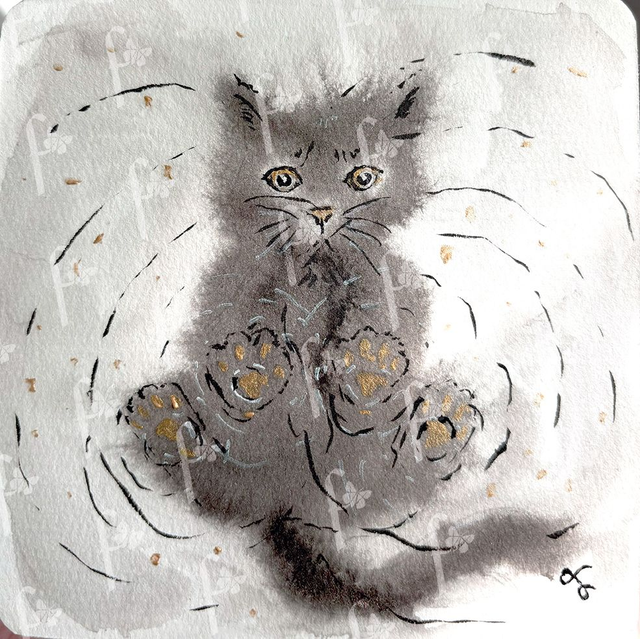 Encre de chine et acrylique doré.